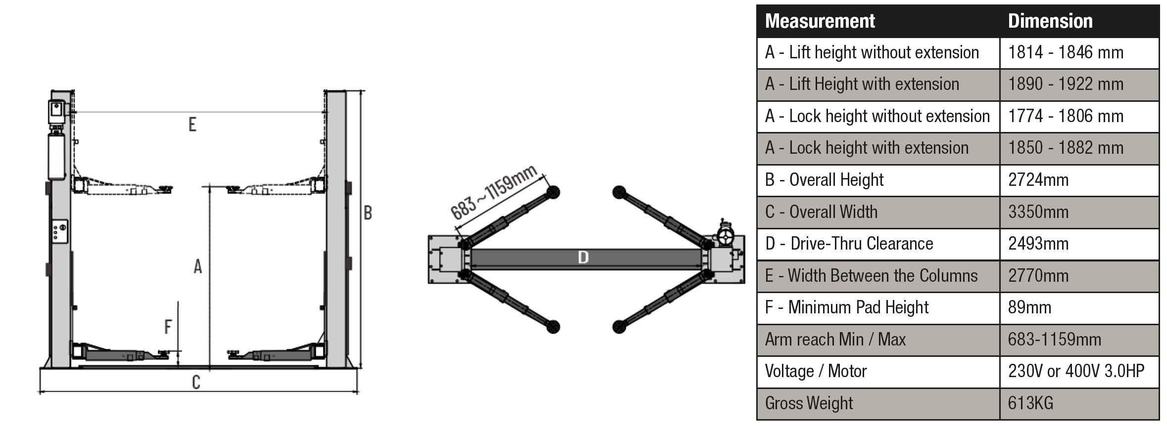 El nuevo AMGO E240 incorpora un sistema de liberación electromagnética automática y un mecanismo de doble bloqueo de seguridad, lo que aumenta la seguridad y elimina la necesidad de suministro de aire. Los brazos telescópicos de tres etapas de serie incluyen bandejas para herramientas y protectores de dedos, así como mecanismos de bloqueo automático para los brazos de retención. Su diseño de techo abierto es ideal para elevar vehículos altos y puede instalarse en talleres con techos bajos.
